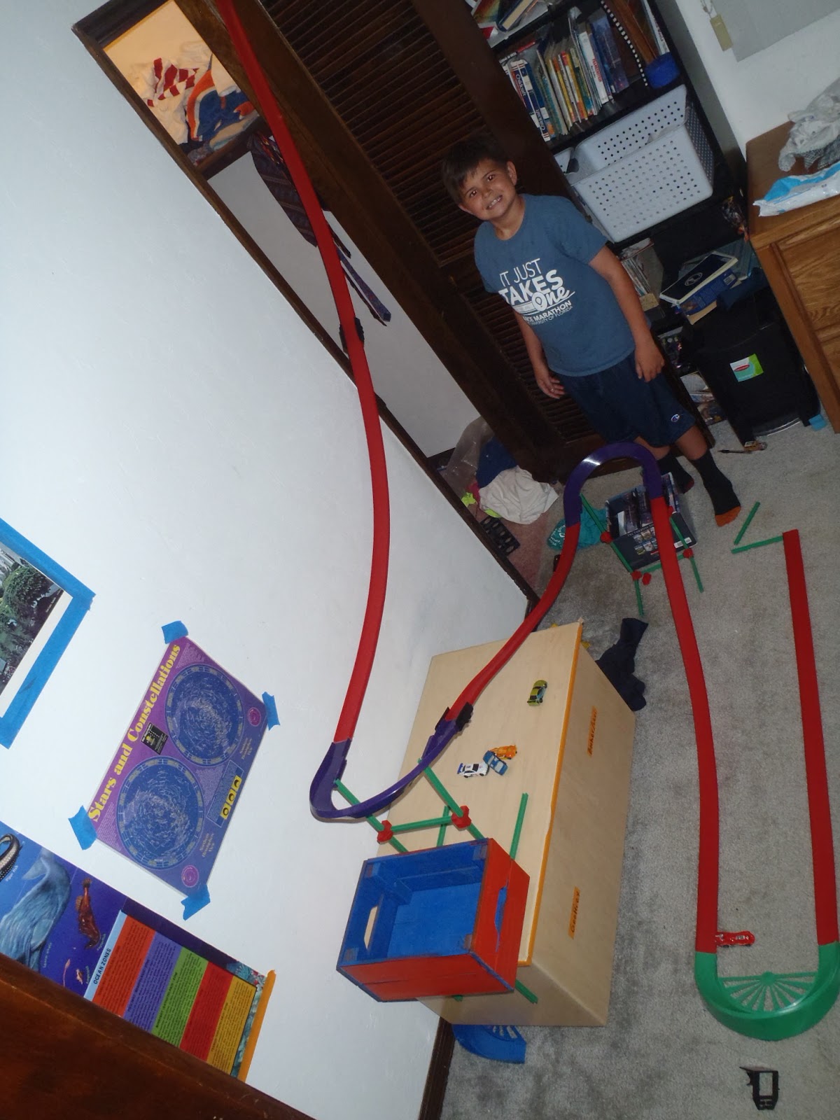 A friend of ours gave G these tracks a few years back. They are discontinued. G made all the tracks in the instructions. The tracks went away for a while. Now he's using them again and getting creative.